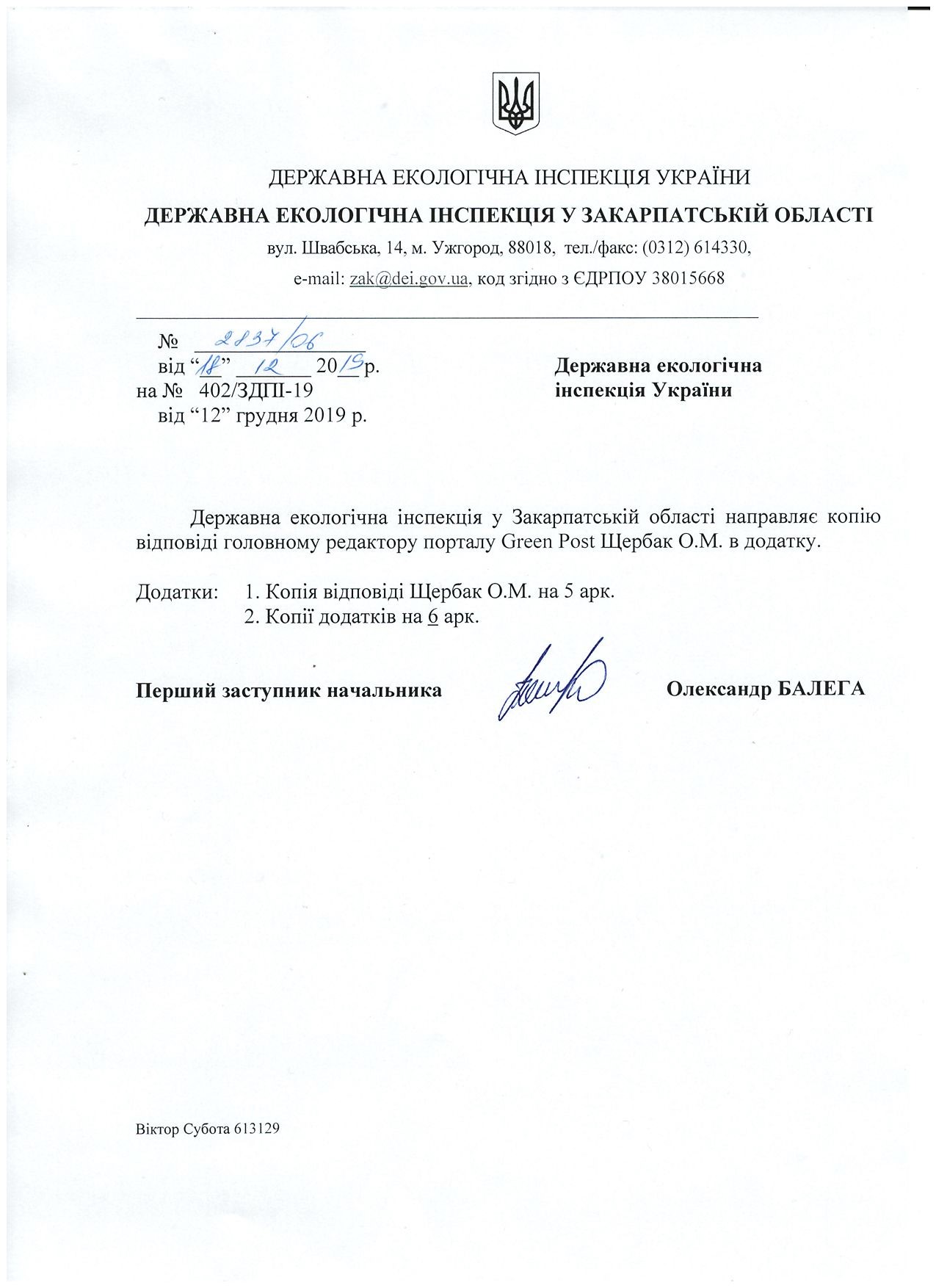 На фото-ответ экоинспекции в Закарпатской области=