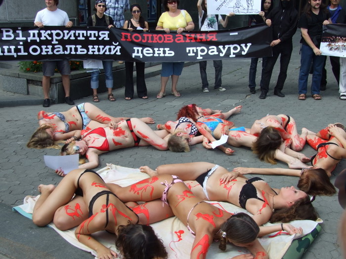 Обнаженный пикет против охоты в Киеве 16.08.2009: