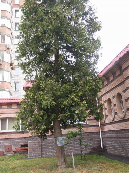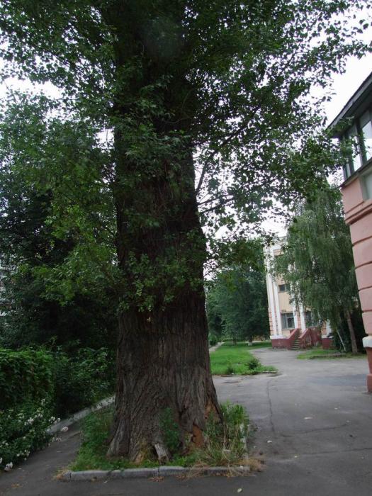 Растет возле Первого корпуса КПИ. Высота около 10 м., обхват около 2 м., возраст около 200 лет. Требует заповедания