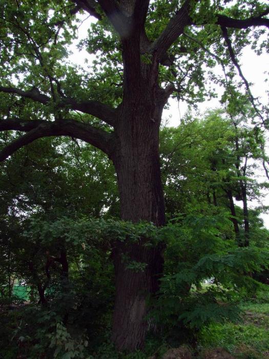 Дуб по ул. Зализничной, 46, рядом со спортивным центром КПИ и железнодорожной платформой Караваевы Дачи.