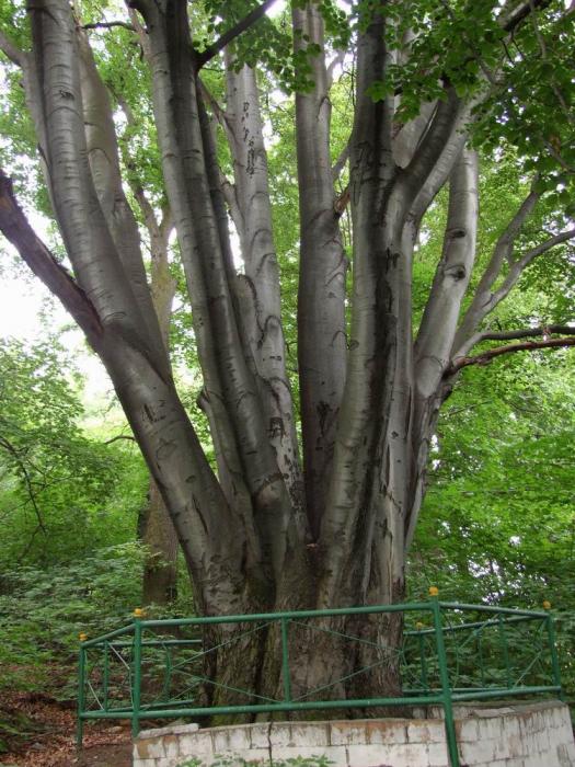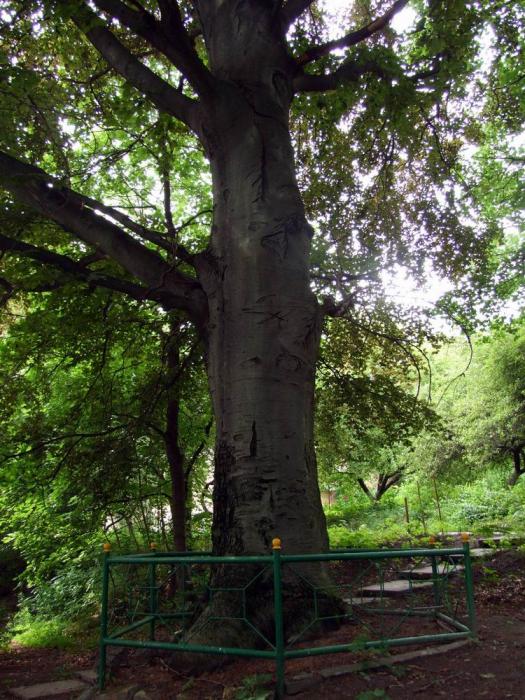 Возраст 400 лет, высота 15 м, обхват ствола 4,50 м.