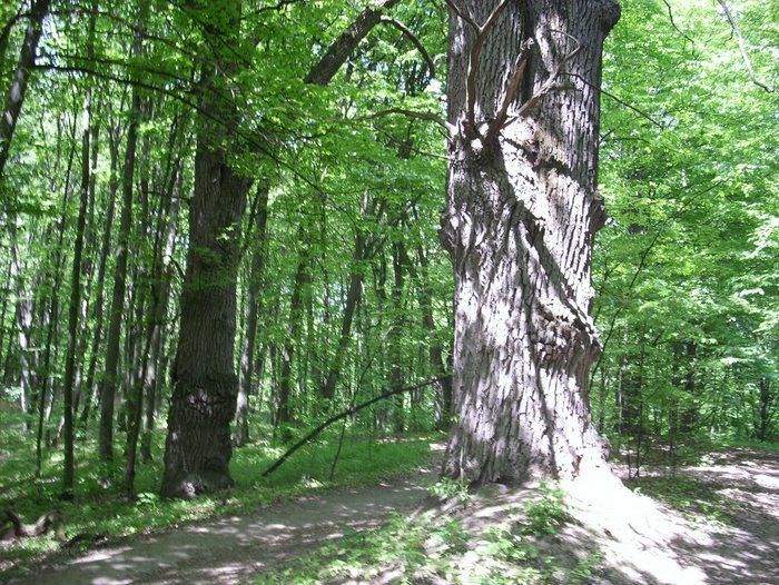 Дубы, возраст 300-400 лет, высота 20-30 м., обхват ствола 4-5 м.