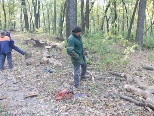 Примерно в это же время координатор программ по ПЗФ Киевского эколого-культурного центра И.Парникоза проводил проверку охранного редима в региональном ландшафтном парке Лысая гора ( г. Киев).  Внезапно он обнаружил  массовую порубку деревьев бензопилами. Два грузовика уже были загружены спиленными деревьями. Он срочно вызвал  и.о. директора  музея- “Киевская Фортеця” ( в ведении которого находится данный РЛП) О.Новикову -Вигран. Им удалось выяснить, что это была  санитарная рубка, велась она силами работников Печерского “Зеленстроя” и на нее не было никаких разрешительных документов. Рубка была остановлена, а техника выведена из территории РЛП.