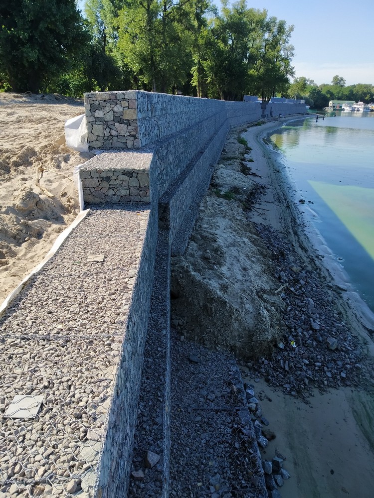 На острове Долобецком ( Гидропарк), который входит в заповедный обьект –региональный ландшафтный парк « Днепровские острова», на обрывистом берегу , рядом с Молодежным пляжем, КП «Плесо», ни с того, ни с сего, несколько лет назад вырубило все деревья и кустарники. Не пожалело даже яблони и сливы. Берег, оставшись без деревьев, которые его укрепляли, стал осыпаться. И тогда КП « Плесо» решило укрепить берег огромной стеной из бетона, камней и арматуры.