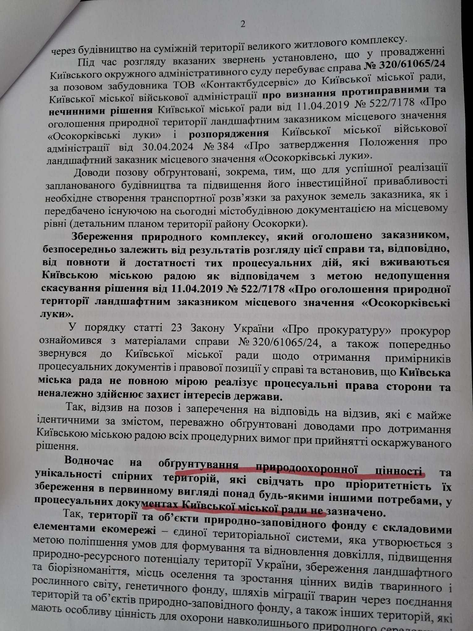 Прокурор пише- ” Київська міська рада не повною мірою реалізує процесуальні права сторони та неналежно здійснює захист інтересів держави “.