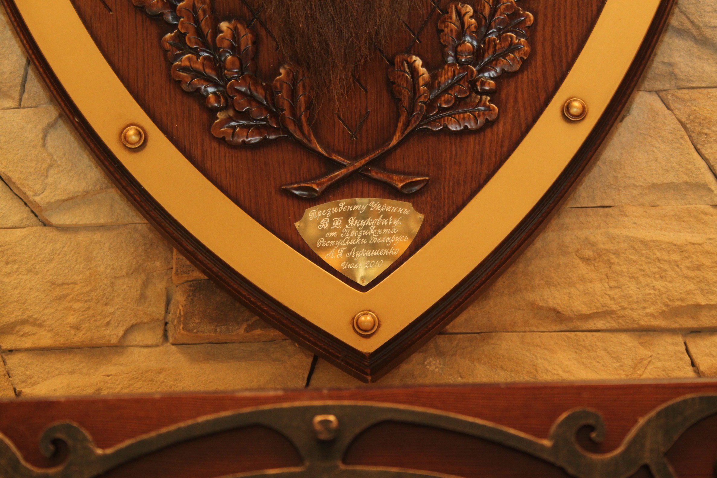 В бывшей охотничьей вотчине Януковича-Сухолучье, в охотничьей фазенде бывшего Президента Украины Януковича  сохранился редкий экспонат.Это голова зубра, которую  в 2010 г. подарил Януковичу другой Президент-диктатор Лукашенко ( см. фото). Об этом свидетельствует специальная памятная табличка, сделанная рядом с чучелом головы зубра.