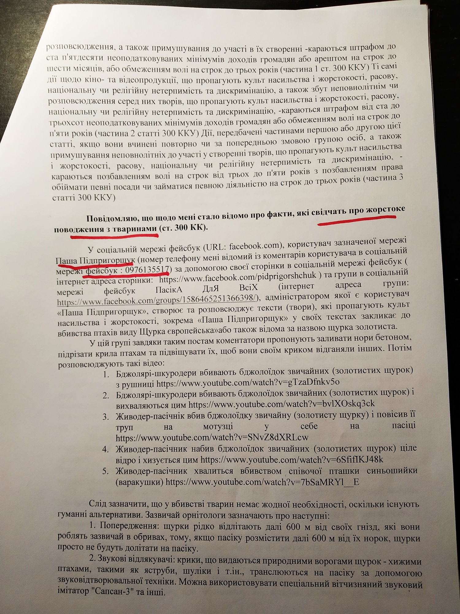 И вот Дарницкое управление полиции г. Киева внесло нашу жалобу на П. Пидпригорщука в ЭРДР по признакам уголовного преступления по части 1 статьи 299 Уголовного кодекса Украины, что означает возбуждение уголовного дела. Номер криминального производства: 12020105020000422.