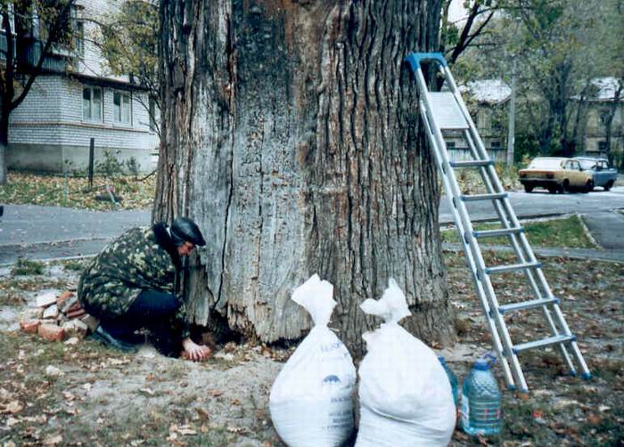 Лечение самого старого в Киеве 700 летнего дуба Кристера на улице Осиповского