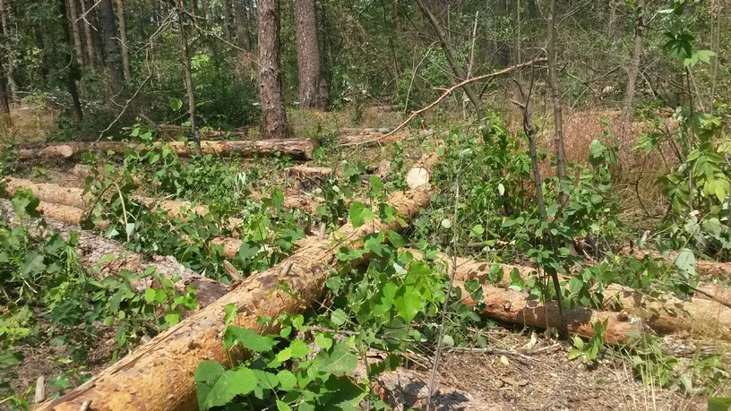 Наша проверка показала, что в незаповеданном Пуща-Водицком лесу уже уничтожено сплошными рубками около 50 % золотого леса.Например, это кварталы 25,47, 66,83,94,95,98,104,105 Межигирского лесничества , кв. 8,17,18,19, 34,82 Пуща-Водицкого лесничества . Вместо 200-летних золотых сосен лесники насадили монокультуры из молодых сосенок, которые, конечно, еще сотни лет не заменят вековые сосны ( если, конечно, еще доживут).