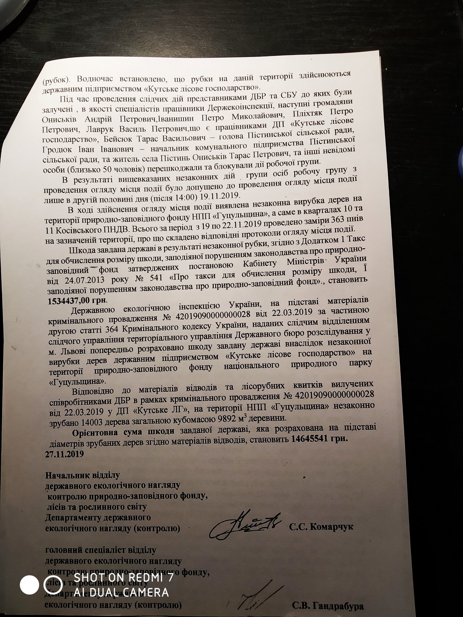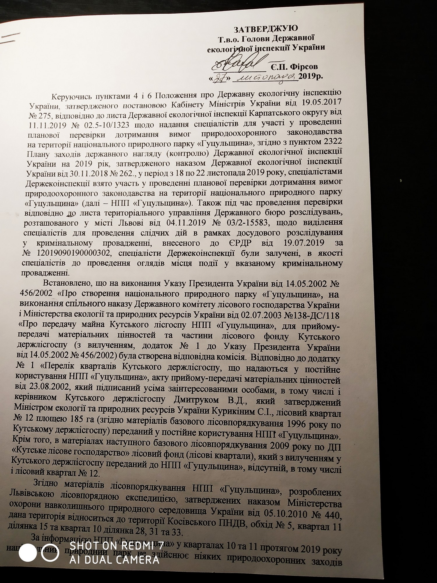 Информационная записка ГЭИ о злодеяниях Кутского лесхоза в НПП Гуцульщина
