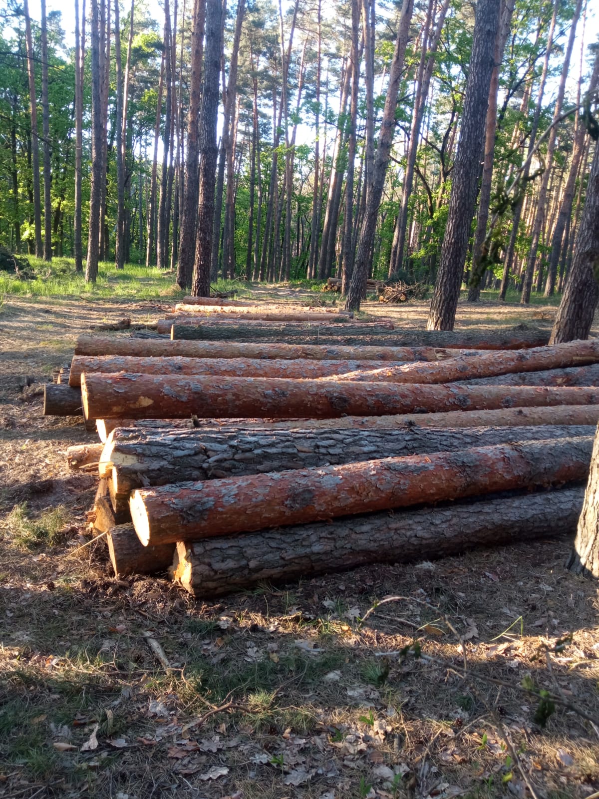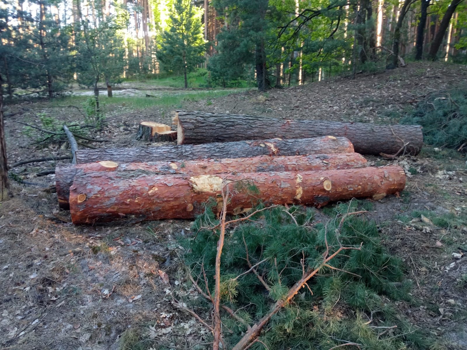 На фото- рубка сосен та   дубів у національному парку « Білоозерський «