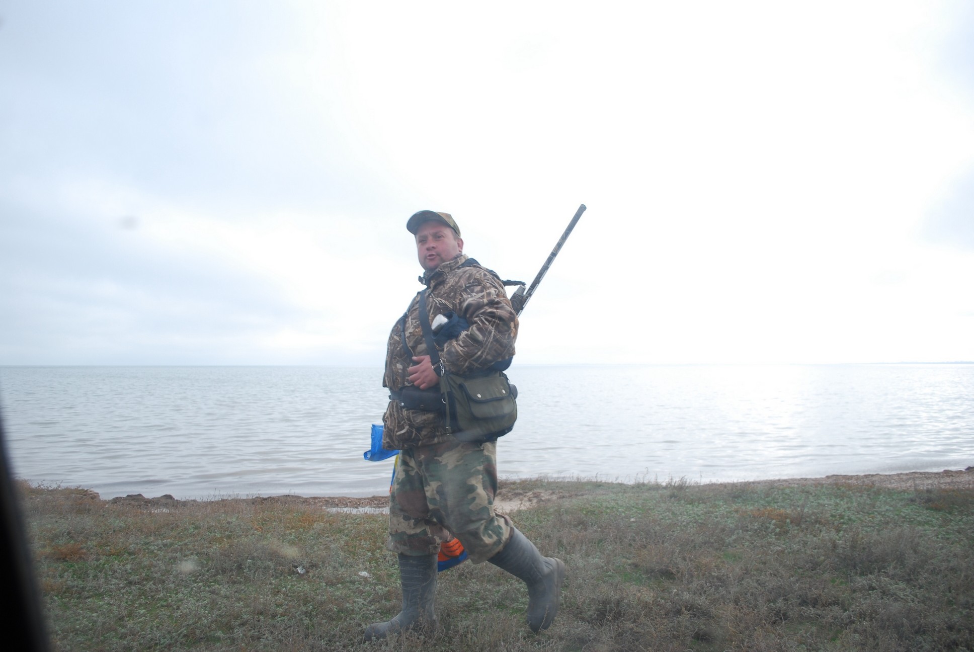 4135 в нацпарке Тузловские лиманы полно браконьеров-охотников.Вот один из них-спокойно охотится в парке.