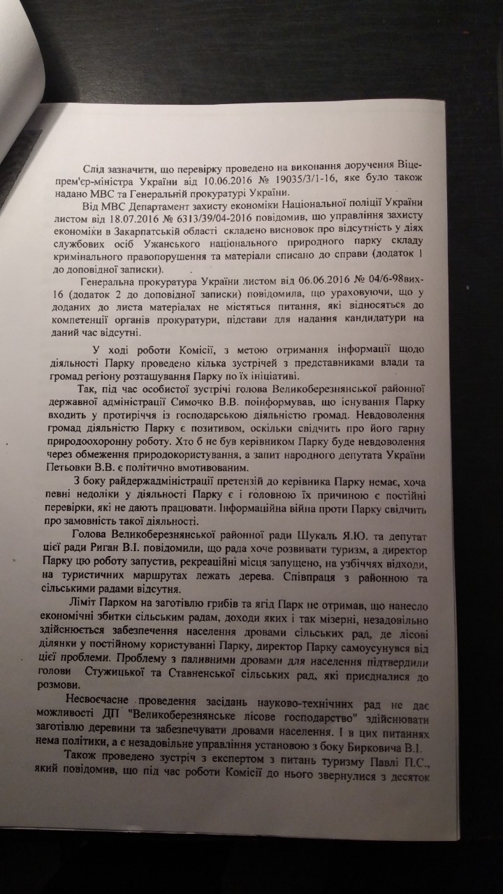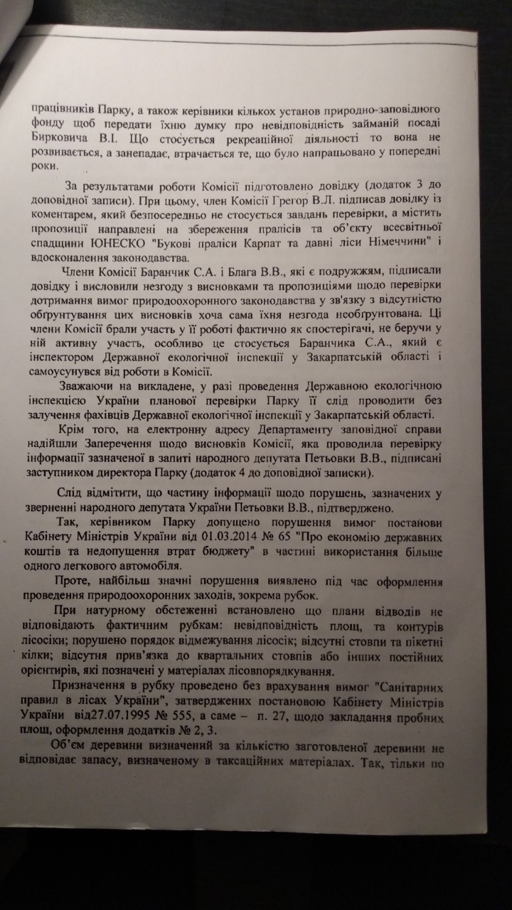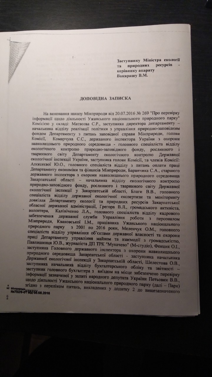 Сторінка з Доповідної записки комісії Мінприроди (інші сторінки наводимо в кінці статті)