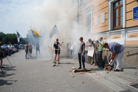 Жесткий пикет “Нарубим дров академикам” Президиума Национальной академии наук Украины в защиту дендропарка Александрия и академических заповедников