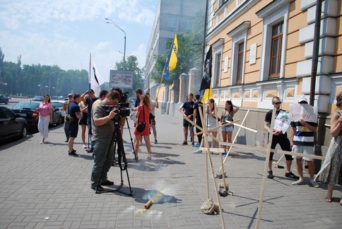 Пикетирующие рубили возле входа в Президиум НАНУ дрова, установили кресты, символизирубющие погибшие деревья, жгли дымовухи, били в барабаны, гудели в дудки , кричали лозунги, давали интревью журналистам.Пикет освещали многочисленные СМИ. Перепуганные чиновники Президиума НАНУ вызвали полицию, которая приехав, не стала вмешиваться в разборку экологов с чиновниками Президиума НАНУ. Как считает директор КЭКЦ Вл.Борейко, под крылышком Академии в ее заповедниках свили уютные гнездышки директора- беспредельщики, которые грубо нарушают природоохраное законодательство ( чего только стоит круглогодичный промышленный лов рыбы в заповедной зоне Дунайского заповедника). Поэтому все академические заповедники, пока не поздно, необходимо срочно передавать Минприроде.